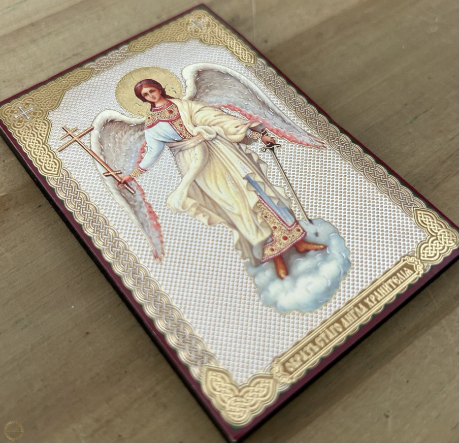 Ícone do Anjo da Guarda ouro 6x8cm 6mm VALOR 20.00 Seu protetor celestial — companhia fiel em todos os caminhos da vida O Anjo da Guarda é o enviado de Deus que caminha conosco desde o nascimento. Este ícone representa a presença invisível, mas constante, de um ser espiritual que intercede, guia, protege e consola em todos os momentos da nossa jornada. Uma presença de luz e proteção Segundo a tradição cristã, cada pessoa tem um anjo designado por Deus, cuja missão é nos guardar do mal, inspirar o bem e nos aproximar da vontade divina. Neste ícone, o Anjo é representado com ternura, beleza e serenidade, geralmente com uma mão estendida em bênção e a outra segurando uma espada ou um símbolo de vigilância. Este ícone é especialmente amado em quartos de crianças, mas também é muito buscado por adultos que sentem a necessidade de segurança espiritual. Paz e segurança no seu lar Ideal para ser colocado na entrada da casa, em quartos, ou no cantinho de oração. Um lembrete constante de que você é amado e protegido por Deus, mesmo nos momentos de incerteza e dificuldade. Um presente de carinho celestial Maravilhoso para batizados, aniversários de crianças, primeira comunhão, ou como gesto de amor e proteção para alguém que você quer bem. Arte sacra delicada, feita com beleza e sentido espiritual profundo Enviado com todo cuidado e carinho Atendimento próximo, com atenção individual e acolhimento