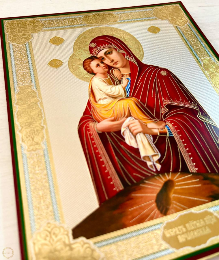 Nossa Senhora de Pochaev é um dos ícones mais venerados da Mãe de Deus. História do aparecimento da imagem A contagem regressiva da história conhecida do mosteiro, hoje conhecido como Santa Dormição Pochaev Lavra, começa em 1240. Segundo a lenda, foi criado por dois monges de Kiev que fugiam da invasão tártara. Eles se mudaram para o oeste, alcançaram as terras de Volyn e se estabeleceram na deserta montanha Pochaev, coberta de florestas. Um dia, um dos Chernets subiu ao topo da montanha. E então um milagre apareceu para ele - a figura brilhante da Mãe de Deus disfarçada de Rainha dos Céus, em ricas vestes, com uma coroa na cabeça e um cetro na mão. Ela estava cercada por chamas, mas não queimou, como a Sarça Ardente. A figura radiante da Mãe de Deus logo desapareceu. Porém, neste local, na pedra, havia a marca do seu pé, que se encheu de água. E o mosteiro começou a crescer e gradualmente se transformou em um grandioso complexo, contando agora com uma dúzia e meia de igrejas e muitos edifícios econômicos e residenciais. No local onde a Mãe de Deus pisou, foi erguida a Igreja da Assunção. Ele cobriu a marca sagrada, que até hoje está constantemente cheia de água, não importa o quanto seja retirada. Ao lado do santuário está um monge de plantão que distribui água da nascente de Tselbonosnoe aos peregrinos. Como o Ícone Pochaev da Mãe de Deus ajuda? Ícones Pochaev da Mãe de Deus, ícones da Mãe de Deus compram em ... Além disso, a imagem de Nossa Senhora de Pochaev ajuda aqueles que sofrem a recuperar de doenças mentais e físicas, incluindo cegueira e doenças articulares. Acredita-se que a oração diante do ícone salva as pessoas de doenças como artrite, doenças cardiovasculares e fortalece a fé em momentos difíceis de tristeza, dúvida e hesitação. Material. Feito na folha de ouro e aplicada no madeira (MDF 6 mm). Atras do icone aplicado um pedaso de fita dupla-face para colar na parede, tambem um suporte para estalar icone. Trabalhamos com lojistas, atacado.