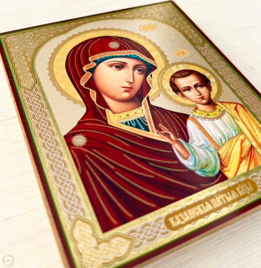 Icone de Nossa Senhora de Kazan, Protetora e Padroera em estilo grego-bizantino, teria sido pintado, segundo os especialistas, em Constantinopla, no século XIII. A obra apresenta a imagem de meio corpo da Virgem carregando o Menino Jesus, que se encontra quase de pé numa atitude de benção para com sua mãe, para quem ele ergue sua mão direita.