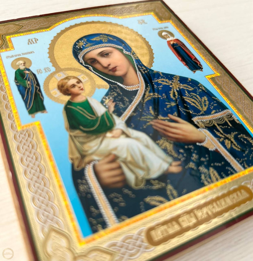 Segundo a lenda, o apóstolo Lucas pintou esta imagem no Getsêmani. Em 463, o ícone foi transferido pelo imperador bizantino Leão, o Grande, para Constantinopla. O ícone foi colocado na Igreja da Fonte Vivificante. No século VII, a cidade foi sitiada pelos citas, mas não foi tomada apenas graças à oração popular diante deste ícone. Em memória deste milagre, o ícone foi transferido para uma das principais igrejas de Bizâncio - a Igreja de Blaquerna, onde permaneceu por quase 300 anos. O Ícone da Mãe de Deus em Jerusalém é considerado uma das imagens mais poderosas da Mãe de Deus. Não apenas listas, mas também reproduções comuns deste santuário são capazes de fazer milagres. Porém, devemos lembrar: o poder de qualquer ícone está na fé humana, caso contrário ele se transforma em uma imagem comum. Material. Feito na folha de ouro e aplicada no madeira (MDF 6 mm). Atras do icone aplicado um pedaso de fita dupla-face para colar na parede, tambem um suporte para estalar icone. Trabalhamos com lojistas, atacado.
