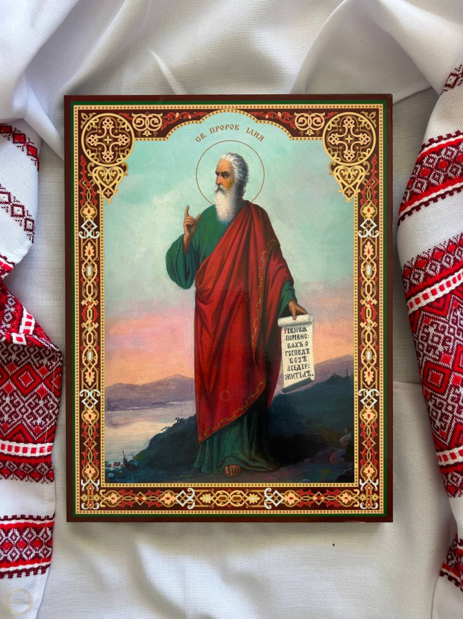 Na tradição popular eslava, o profeta Elias é o senhor do trovão, do fogo celestial e da chuva, e o patrono da colheita e da fertilidade. Elias é um " santo formidável ". As pessoas rezavam a ele pedindo libertação da seca, que naqueles dias significava quebra de safra e fome. Essas orações por chuva, dirigidas ao profeta Elias, ainda sobrevivem na tradição popular da igreja russa. As pessoas também rezam a ele por uma colheita saudável. No entanto, é difícil dizer que a Bíblia contenha qualquer indicação dessa "esfera de responsabilidade" para o santo. O profeta Elias é uma das figuras mais proeminentes da história do Antigo Testamento. Ele nasceu na cidade judaica de Tesbas há três mil anos, no século IX a.C., durante o reinado do rei Acabe, sob o qual Israel, tendo rejeitado o Deus verdadeiro, começou a servir aos deuses pagãos Baal e Astarte. Expor falsos deuses e sacerdotes perversos tornou-se a principal missão de Elias. No Monte Carmelo, ele convoca os sacerdotes de Baal para trazerem fogo ao altar e, quando eles falham, ele volta sua oração a Javé, invoca o fogo celestial e executa os sacerdotes dos falsos deuses ali mesmo, no altar.