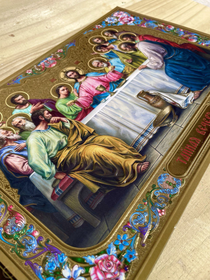 Traga para o seu lar a imagem de um dos momentos mais sagrados da fé cristã: a Santa Ceia, quando Jesus Cristo, reunido com Seus doze apóstolos, institui a Eucaristia, entregando Seu amor e sacrifício à humanidade. Este ícone, com acabamento refinado e estilo clássico bizantino, é mais que uma obra de arte – é uma janela para o divino. Ele convida à oração, à união espiritual e ao perdão, sendo símbolo da entrega de Cristo por nós. Significado espiritual: Representa a comunhão, a humildade de servir e o amor incondicional de Deus. Um lembrete diário da presença de Cristo em nossas vidas. Ideal para: Altares e oratórios Ambientes de oração e meditação Presentes devocionais com significado profundo Decoração espiritual com propósito Produzido com materiais de alta qualidade, este ícone é perfeito para quem deseja expressar sua fé com elegância, reverência e beleza. Leve para sua casa a bênção e a paz da Última Ceia. Uma peça que inspira fé, transforma ambientes e fortalece o espírito.