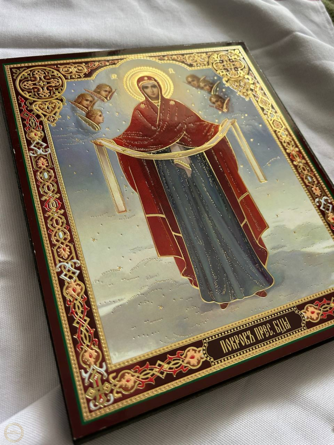 O ícone "Proteção da Santíssima Mãe de Deus" simboliza a proteção, o patrocínio e o cuidado divinos.Ela ajuda a proteger contra o mal, doenças e infortúnios, além de trazer paz de espírito, cura e auxiliar nos negócios e na construção da família. É colocada em casa para proteger a família da má sorte, como um símbolo de proteção espiritual e esperança. Significado e importância Proteção e amparo: O ícone simboliza como a Mãe de Deus, com seu omóforo (cobertura), protege o mundo dos problemas e males, intercedendo pelas pessoas. Auxílio em oração: As pessoas oram diante dela pedindo misericórdia, intercessão, proteção contra inimigos visíveis e invisíveis, bem como pela preservação da vida e da saúde. Escudo Espiritual: O Véu é considerado um escudo espiritual que protege contra tentações, coisas sedutoras e salva a alma das forças das trevas. Ligação com a Festa da Intercessão: A festa, celebrada em 14 de outubro, está associada ao milagre em que a Mãe de Deus revelou sua proteção, protegendo a cidade dos inimigos. Para que serve isso dentro de casa? Proteção do lar e da família: O ícone protege todos os membros da família de qualquer adversidade e infortúnio. Ajuda com problemas do dia a dia: As pessoas recorrem ao ícone em busca de cura para doenças, ajuda no trabalho, conquista de estabilidade financeira ou solução de problemas de moradia. Formar uma família: Moças oram para encontrar um parceiro fiel e famílias sem filhos oram pela dádiva da prole. Tranquilidade: O ícone ajuda a restaurar a paz de espírito, aliviar a ansiedade e fortalecer a fé. Proteção em viagens: Pode servir como proteção durante viagens a lazer e a negócios.