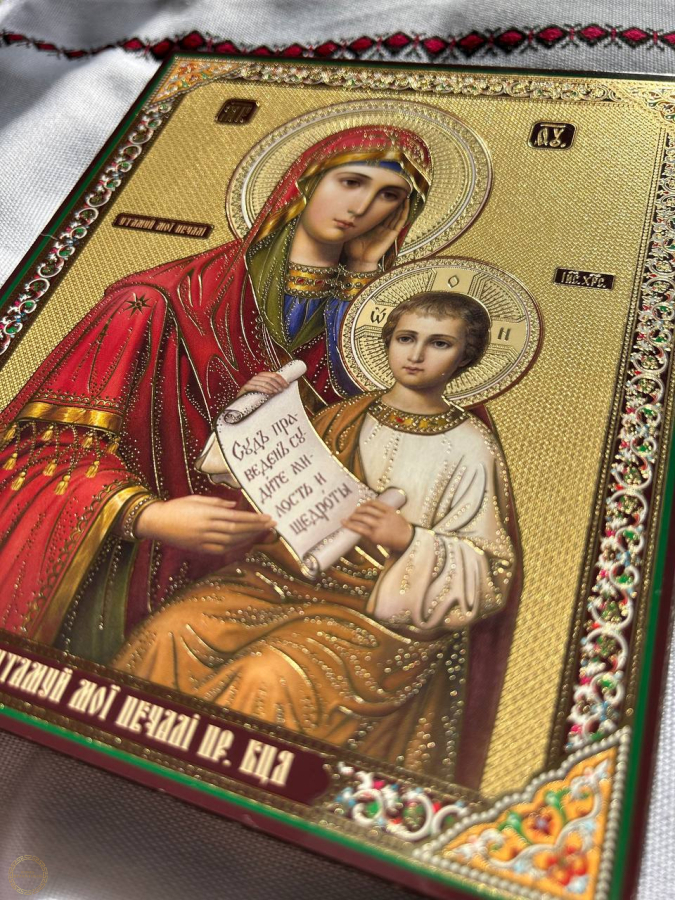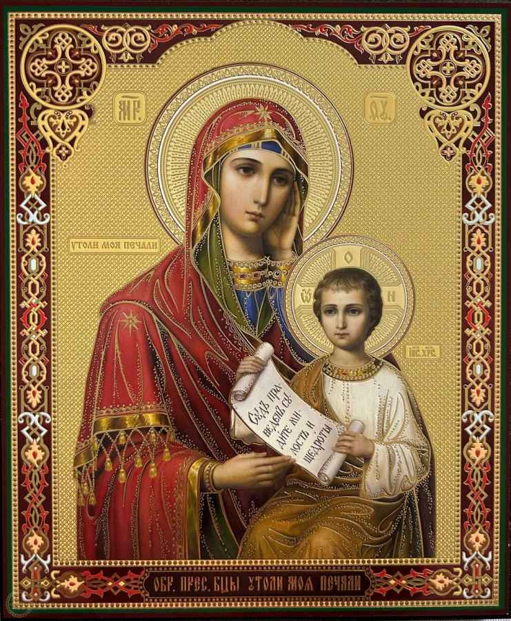 O ícone Virgem Maria liberacao da tristeza ("Acalma as minhas dores") é um ícone milagroso da Mãe de Deus, ao qual as pessoas recorrem em busca de consolo em momentos de tristeza, doença, perda e outras dificuldades da vida.Ela ajuda as pessoas a encontrar esperança, a se curarem de doenças físicas e mentais, a superarem vícios e também a pedirem ajuda em assuntos familiares, bem-estar material e outras questões da vida. No lar, esse ícone serve como um lembrete da misericórdia de Deus e do seu apoio espiritual. O significado do ícone Símbolo de consolo: O nome do ícone vem das orações em que os fiéis pedem à Virgem Santíssima que alivie suas dores e sofrimentos. Proteção contra vícios: As pessoas costumam rezar diante do ícone pedindo ajuda para se livrar do alcoolismo, da dependência química e de outros vícios, não apenas para se livrarem do vício em si, mas também para se livrarem de seus entes queridos. Auxílio em situações difíceis da vida: O ícone ajuda em momentos de perda, angústia emocional, problemas familiares e outras provações. Cura: É considerada uma fonte de cura espiritual e física para diversos males. Ajuda com questões do dia a dia: As pessoas também recorrem a ela em busca de apoio para o bem-estar familiar, um bom emprego, o nascimento de filhos e a resolução de problemas de moradia. Por que você precisa de um ícone em sua casa? Apoio espiritual: O ícone serve como um lembrete do apoio espiritual em momentos de dificuldade, ajudando a fortalecer a fé e a encontrar forças para evitar o desespero. "Canto Vermelho": Muitas vezes, o ícone "Acalma as Minhas Tristezas" faz parte de uma composição de ícones no "canto vermelho" da casa, que é o centro espiritual do lar. Lugar para oração: Cria um espaço especial na casa para oração e vida espiritual.