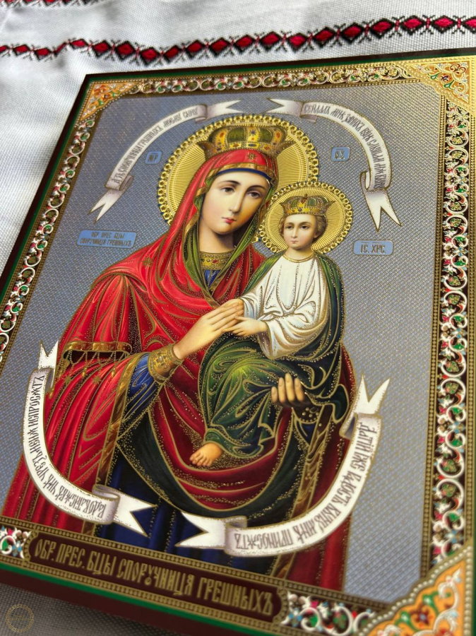 O ícone "Garantia dos Pecadores" significa "A Medianera dos Pecadores ", isto é, a Mãe de Deus, que age como mediadora entre os pecadores e Deus.Sua importância reside no fato de que ela oferece esperança de salvação e intercessão, lembrando-nos da misericórdia e compaixão da Mãe de Deus. As orações diante do ícone ajudam na cura de doenças, na superação do desânimo e de situações difíceis da vida, e no fortalecimento dos laços familiares. O significado da iconografia No ícone, a Mãe de Deus segura o Menino Jesus, que por sua vez segura a mão direita dela. Essa postura simboliza que Jesus ouve as orações de Sua Mãe e lhe concede o poder de interceder pelos pecadores. O nome da imagem vem da inscrição no ícone: “Eu sou a garantia dos pecadores perante Meu Filho…”, que significa “Eu sou a garantia dos pecadores perante Meu Filho”. Para que serve o ícone? Consolo espiritual: Ajuda a aliviar a depressão, a tristeza e o desespero. Cura: Orações diante do ícone auxiliam na cura de doenças graves. Bem-estar familiar: Fortalece os laços familiares e o amor conjugal. Superando dificuldades: Ajuda a resolver situações e conflitos difíceis da vida. Força espiritual: Promove a fé e ajuda a manter a perseverança. História e Veneração: A celebração do ícone na Igreja Ortodoxa ocorre nos dias 11 de junho e 20 de março.
