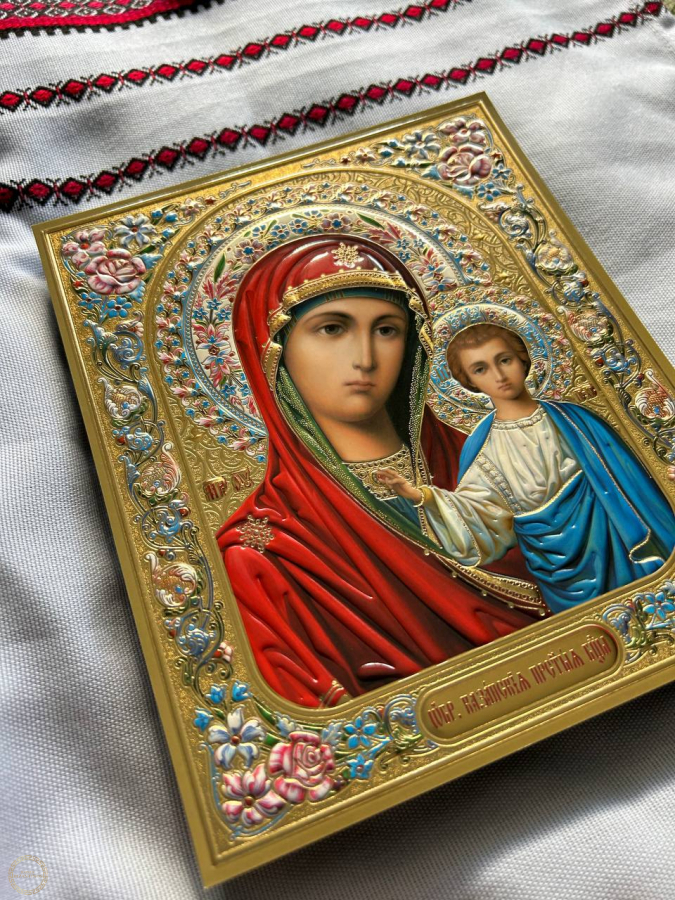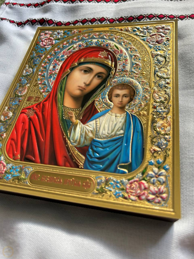 Ícone de Kazan da Mãe de Deus -Um dos ícones mais venerados da Igreja Ortodoxa Russa, que surgiu em Kazan em 1579.Ela é venerada como padroeira da família, protetora em momentos difíceis da vida e auxilia no combate a doenças, especialmente as oculares. As pessoas oram diante do ícone pedindo cura, iluminação espiritual, bem-estar familiar e proteção da pátria.  Significado e importância Padroeira da Família: Acredita-se que o ícone ajude a criar e fortalecer famílias. Os recém-casados ​​são abençoados com o Ícone de Kazan antes do casamento para garantir uma vida familiar feliz. Auxílio em situações difíceis: Recorrem a ela em momentos de luto, tristeza e quando precisam tomar uma decisão importante. Proteção contra doenças: Este ícone é considerado milagroso, curando diversas doenças, incluindo problemas de visão. Defesa da Pátria: Historicamente, era o estandarte do povo russo em tempos difíceis, e as pessoas rezavam diante dele pela proteção do país contra os inimigos. Proteção Infantil: Sua imagem é frequentemente colocada perto do berço de uma criança para protegê-la do mal e das doenças.  Como o ícone é representado O ícone original retrata o Menino Jesus na mão da Mãe de Deus, que aponta para Ele com uma das mãos. A cabeça da Virgem Maria está ligeiramente inclinada, simbolizando a intercessão em oração. O gesto da Criança apontando para a Mãe é interpretado como um símbolo da bênção que Ele concede aos fiéis.