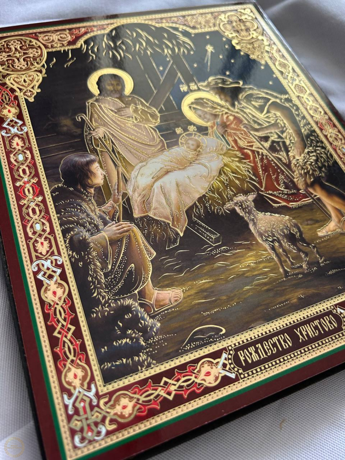 Natividade de Cristo. Icone 20x24 cm 15 mm Ter o ícone da Natividade de Cristo (Nascimento de Jesus) em casa é altamente valorizado na tradição cristã, não apenas como decoração sazonal, mas como um elemento espiritual permanente que enriquece a vida de fé da família. O ícone é o lembrete visual mais poderoso do mistério central da fé cristã: a Encarnação - o momento em que Deus se fez homem por amor à humanidade. Ele mostra a humildade radical de Deus, que escolheu nascer numa caverna escura e fria, não em um palácio. Esta imagem inspira gratidão, humildade e a compreensão de que Deus está próximo de nós, mesmo nas realidades mais simples e difíceis da vida. A caverna escura no ícone simboliza o mundo antes da graça redentora, ou as "trevas" do pecado e do sofrimento em nossas vidas. A luz que emana do Menino Jesus e da estrela representa a esperança e a salvação que Ele trouxe ao mundo. Ter este ícone em casa é um lembrete diário de que, mesmo nos momentos mais sombrios, a luz de Cristo brilha e a esperança da redenção está sempre presente. O ícone destaca a Sagrada Família (Maria, José e o Menino). A figura de Maria, serena e contemplativa, é um modelo de maternidade e acessível à vontade de Deus. O ícone santifica a vida familiar, lembrando que o lar é o primeiro lugar onde Deus se manifesta e onde a fé é vivida e transmitida. Ele valoriza a dignidade da vida humana desde o início. Ter o ícone em casa ajuda a família a se manter sintonizada com o calendário litúrgico da Igreja, especialmente durante a época do Natal e da Epifania, aprofundando a celebração do mistério do nascimento de Cristo durante todo o ano.
