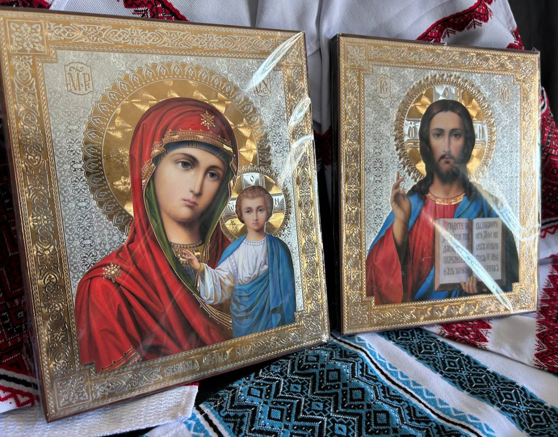 Icones Bizantino Nossa Senhora Mae de Deus e Jesus Pantocrator Ouro 20x24 cm, 15 mm. Valor 280.00 São necessários ícones de Jesus Salvador e de Nossa Senhora de Kazan para o lar.Para proteção espiritual da família, auxílio em situações difíceis da vida e para encontrar paz e harmonia; o Salvador como caminho para a salvação e Nossa Senhora de Kazan como padroeira das crianças, das mulheres, da felicidade familiar e também um talismã contra problemas e inimigos.Elas são colocadas no "canto vermelho" como um centro de oração doméstica para unir a família e fortalecer a fé. Jesus, o Salvador Centro espiritual: Simboliza o próprio caminho da salvação, a expiação dos pecados e a vitória sobre a morte. A base da fé: As pessoas oram diante dele pedindo perdão, ajuda nas tentações, fortalecimento da fé e para encontrar o caminho verdadeiro. Nossa Senhora de Kazan Padroeira da família: Ela abençoa especialmente os recém-casados, reza pelo amor, fidelidade, paz na família e pelos filhos. Proteção: Ajuda contra problemas, inimigos, doenças (especialmente doenças oculares), protege as crianças do mal, pesadelos e olhares maldosos. Amuleto: Acredita-se que sem este ícone não haverá dona de casa, e o próprio ícone é uma parte importante do iconostásio doméstico. Significado compartilhado Iconostase familiar: Juntos, esses ícones (frequentemente com São Nicolau) formam uma "pequena igreja" no lar, onde a família reza pelo bem-estar. Proteção através da oração: Os ícones servem como "janelas" para o mundo espiritual, atraindo a graça, ajudando a superar dificuldades e fortalecendo o espírito.