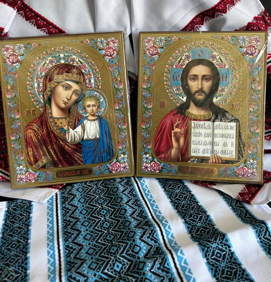 Icones Bizantino Nossa Senhora Mae de Deus e Jesus Pantocrator Flores 20x24 cm, 15 mm. Valor 280.00 São necessários ícones de Jesus Salvador e de Nossa Senhora de Kazan para o lar.Para proteção espiritual da família, auxílio em situações difíceis da vida e para encontrar paz e harmonia; o Salvador como caminho para a salvação e Nossa Senhora de Kazan como padroeira das crianças, das mulheres, da felicidade familiar e também um talismã contra problemas e inimigos.Elas são colocadas no "canto vermelho" como um centro de oração doméstica para unir a família e fortalecer a fé. Jesus, o Salvador Centro espiritual: Simboliza o próprio caminho da salvação, a expiação dos pecados e a vitória sobre a morte. A base da fé: As pessoas oram diante dele pedindo perdão, ajuda nas tentações, fortalecimento da fé e para encontrar o caminho verdadeiro. Nossa Senhora de Kazan Padroeira da família: Ela abençoa especialmente os recém-casados, reza pelo amor, fidelidade, paz na família e pelos filhos. Proteção: Ajuda contra problemas, inimigos, doenças (especialmente doenças oculares), protege as crianças do mal, pesadelos e olhares maldosos. Amuleto: Acredita-se que sem este ícone não haverá dona de casa, e o próprio ícone é uma parte importante do iconostásio doméstico. Significado compartilhado Iconostase familiar: Juntos, esses ícones (frequentemente com São Nicolau) formam uma "pequena igreja" no lar, onde a família reza pelo bem-estar. Proteção através da oração: Os ícones servem como "janelas" para o mundo espiritual, atraindo a graça, ajudando a superar dificuldades e fortalecendo o espírito.