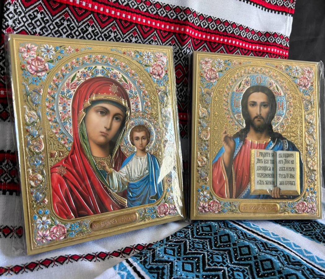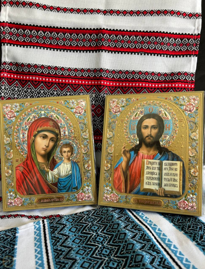 Icones Bizantino Nossa Senhora Mae de Deus e Jesus Pantocrator Flores 15x18 cm, 15 mm. Valor 180.00 São necessários ícones de Jesus Salvador e de Nossa Senhora de Kazan para o lar.Para proteção espiritual da família, auxílio em situações difíceis da vida e para encontrar paz e harmonia; o Salvador como caminho para a salvação e Nossa Senhora de Kazan como padroeira das crianças, das mulheres, da felicidade familiar e também um talismã contra problemas e inimigos.Elas são colocadas no "canto vermelho" como um centro de oração doméstica para unir a família e fortalecer a fé. Jesus, o Salvador Centro espiritual: Simboliza o próprio caminho da salvação, a expiação dos pecados e a vitória sobre a morte. A base da fé: As pessoas oram diante dele pedindo perdão, ajuda nas tentações, fortalecimento da fé e para encontrar o caminho verdadeiro. Nossa Senhora de Kazan Padroeira da família: Ela abençoa especialmente os recém-casados, reza pelo amor, fidelidade, paz na família e pelos filhos. Proteção: Ajuda contra problemas, inimigos, doenças (especialmente doenças oculares), protege as crianças do mal, pesadelos e olhares maldosos. Amuleto: Acredita-se que sem este ícone não haverá dona de casa, e o próprio ícone é uma parte importante do iconostásio doméstico. Significado compartilhado Iconostase familiar: Juntos, esses ícones (frequentemente com São Nicolau) formam uma "pequena igreja" no lar, onde a família reza pelo bem-estar. Proteção através da oração: Os ícones servem como "janelas" para o mundo espiritual, atraindo a graça, ajudando a superar dificuldades e fortalecendo o espírito.